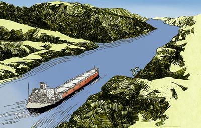 航行在苏伊士运河上的巨轮
