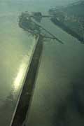 香港大屿山赤蹋角新国际机场是世界上最新建造的最大的海上机场。新机场占地l 275公顷,四分之三是填海.而成,需要l.8亿立方米的填海材料。连接新机场与港九的青马大桥,跨海距离l 377米,桥墩高达196米。1995年建成的珠海机场是国内填海建筑的第一个海上机场。中国第一个人工岛是河北省沧州市黄县岸外渤海上的人工岛。该人工岛是大港油田为勘探开采海洋石油而建造的。