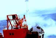 西风带又称盛行西风带,它位于南北半球的中纬度地区。这里常年吹刮偏西风,风速又很大。在北纬40-60度之间多为陆地阻隔,海上大风受此阻力,风速相应降低很多,而南纬40-60度之间几乎全部为辽阔海洋所环绕,表层海水受风力的作用,也产生了一自西向东的环流,由于常年吹刮西风,这个海区里风大浪高流急,航行的船只在这里犹如小球一样,被大浪不断地上下剧烈颠簸,险象环生,很多海员谈起南半球的西风带为之变色。1991年我国“极地”号南极考察船曾经历过那里,当时在船上的记者描述的情景是:“船于1991年3月6日航行到南纬55°处,遇到35米/秒的强风,浪高达20米,山一样的巨浪呼啸着从船尾滚滚而至,将船尾部盘结的粗缆绳全部打散,冲入海里。后甲板上由铆钉固定的1吨重的蒸汽锅连根拔起,像陀螺一样在甲板上滚来滚去,后甲板的门也被巨浪冲破......”这段触目惊心的报道证实了西风带对船只带来了多么大的威胁和险象。
