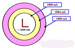(1)µÍÆøÑ¹(¼ò³ÆµÍѹ)£¬ÆäµÈѹÏ߱պϣ¬ÖÐÐÄÆøÑ¹µÍ£¬ÏòÍâÖð½¥Ôö¸ß¡£¿Õ¼äµÈÑ¹ÃæÏòϰ¼£¬ÐÎÈçÅèµØ¡£
