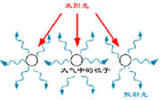 当我们避开太阳朝天空张望时,看到的是蔚蓝的天空,这就是说,在那个方向的天空有光线射入我们的眼帘,从太阳发射过来的光线,在天空的某个地方改变了方向,不然的话,我们所能看到的一切,就只不过是星际空间的黑暗,或者是来自某个遥远星辰的亮光。原来,当光线穿过地球周围的大气时,它的一些能量就向四面八方反射,这样的过程就是散射。