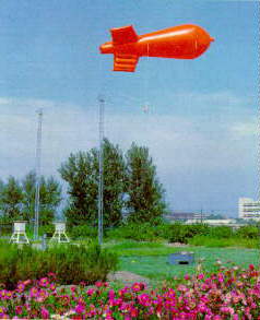 (3) 系留气球 用缆绳拴在地面绞车上,能控制浮升高度的气球。通常用聚脂薄膜做成流线形,缆绳长度及与地面交角可以估算气球距地面高度,它可以携带测量仪器在指定高度作数小时连续测量,用完后收回作多次使用。特别适用于大气污染监测和研究大气边界层等。