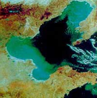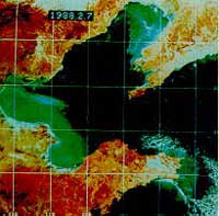 海冰的卫星监测 海冰改变海面的反照率,是影响海气交换的重要因子,海冰对人类在海上活动有严重影响,固定冰盖可阻碍海上航行。由于海冰与水面的反照率有明显差异,卫星可以监测它。下图为不同时期渤海湾海冰,蓝绿色是辽东湾和黄河入海口区的海冰状况。 [上一页] [下一页]