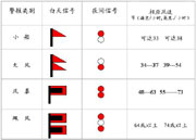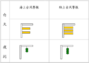 ¡¡¡¡Ì¨·ç¾¯±¨µÄÐźÅÊÇ£º°×ÌìÓûÆÉ«³¤·½ÐÎÆìÖıíʾ£¬Á½ÃæÆìʱ±íʾº£ÉĮ̈·ç¾¯±¨£¬ÈýÃæÆìʱ±íʾº£Éϼ°Â½ÉĮ̈·ç¾¯±¨¡£Ò¹¼äÓÃÂÌÉ«µÆºÅ±íʾ£¬Á½ÕµÂ̵Ʊíʾº£ÉĮ̈·ç¾¯±¨£¬ÈýÕµÂ̵Ʊíʾ½ÉĮ̈·ç¾¯±¨¡£
