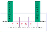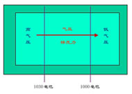 在空气的“海洋”里也有“水位差”―气压差,即两地间存在着气压梯度。计量水位差单位用米,而计量气压差则用毫巴为单位。两把尺子不一样,但水和空气都是流体,又都有重量,水平方向上两地的水或空气如果存在重力的差异,就都会产生由重力大的地方指向重力小的地方的旁压力(如下图)。