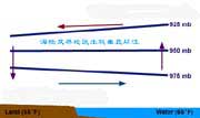 在海滨地区,只要天气晴朗,白天风总是从海上吹向陆地;到夜里,风则从陆地吹向海上。从海上吹向陆地的风,叫做海风(左上图);从陆地吹向海上的风,称为陆风(右上图)。气象上常把两者合称为海陆风。