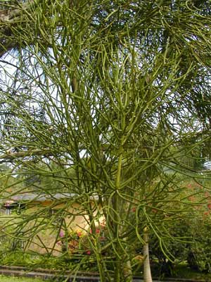 在西双版纳热带植物园里,偶尔会遇到一种怪怪的树:整个树身不见一片叶子,满树尽是光溜溜的碧绿的枝条,若折断一小根枝条或刮破一点树皮,就会有白色的乳汁渗出。导游小姐把游客带到这种树旁时可能会打趣地说:"这叫光棍树,没有结婚的年青人可不能摸啊,如果摸了就会打一辈子光棍的"。光棍树因它奇怪的名字和形态,引起人们的好奇。