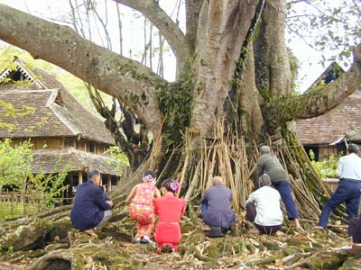 ¡¡¡¡ÔÚÈÈ´øÓêÁÖÖб»µ±×÷¡°ÉñÊ÷¡±µÄÖÖÀà±È±È½ÔÊÇ£¬´óÇàÊ÷£¨Ficus altissima£©¼¸ºõÊDZ»Î÷Ë«°æÄɸ÷Ãñ×干ͬ³ç°ÝµÄ¡°ÉñÊ÷¡±¡£ÕâÖÖÊ÷ľ²»½öÊ®·Ö¸ß´ó£¬¶øÇÒÄܶÔÈÈ´øÓêÁÖÖÐµÄÆäËûÊ÷ľ½øÐС°½Êɱ¡±£¬È¡¶ø´úÖ®£»ËüÃÇÔÚÖ¦èâÉÏÄܳ¤³öºÜ¶àµÄÆøÉú¸ù£¬²¢·¢Óý³É´Ö´óµÄÖ§Öù¸ù£¬Ðγɡ°¶ÀÊ÷³ÉÁÖ¡±µÄÆæ¹Û£»ÔÚ´óÇàÊ÷ÉÏ£¬¸½ÉúÓÐÀ¼»¨¡¢Þ§Àࡢ̦޺¡¢µØÒµȶàÖÖÖ²Î×é³É ÁËÆæÌصġ°¿ÕÖл¨Ô°¡±£»´óÇàÊ÷ÉϵÄÎÞÊý¹û×Ó£¬ÒýÀ´Á˶àÖÖÄñÊÞÕùʳ£¬ÈÈÄÖ·Ç·²£¬³ÉΪ¡°¶¯ÎïÌìÌᱡ£Äѹִö×åµÄÀúÊ·³¤Ê«¡¶ÀåÙº¡·ËµËü¡°¸½ÓÐÉñÁ顱¡£