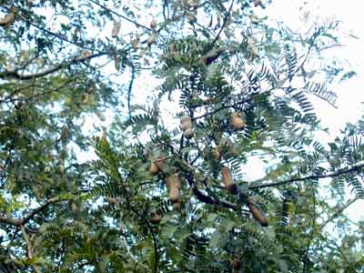 冬春两季,天高云淡,风清气爽,走进西双版纳的傣家村寨 ,很容易见到一种当地人们特别喜爱的果树——酸角,它树身高大,树干粗糙,枝叶扶疏,枝头挂着一串串、一嘟噜褐色的弯钩形荚果。