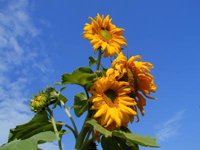 菊科一年生草本植物向日葵,又名葵花、转日莲,原本是哥伦布发现新大陆时的一项新发现,因为在此之前,世界上没有任何关于向日葵的文字记载。16世纪初,西班牙人在秘鲁和墨西哥的山地上,看到满山遍野的向日葵,肥大的绿叶烘托着一个金灿灿的硕大花盘,他们认为是“上帝创造的神花”,将它带回欧洲作为观赏植物种植。其学名HELIANTHUS的意思就是“太阳的花朵”,因其花盘随着太阳运转而得此名。这其实是植物的向性运动,即向日葵茎端的生长区,受到太阳光线的单向刺激,引起体内生长素分布的不均匀,背光面多而向光面少,于是生长素多的背光面生长快,生长素少的向光面生长慢,从而产生向光弯曲现象。也正因为这一点,热爱光明的俄罗斯人民普遍喜欢向日葵,并将它定为国花。