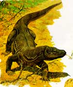恐龙生活的中生代,大气中的二氧化碳的含量较高,说明恐龙很适应于高二氧化碳浓度的大气环境。也许只有在那种大气环境中,它们才能很好的生活。当时,尽管哺乳动物也已经出现,但是它们始终没有得到大发展,也许这正是由于大气成分以及其它环境对它们并不十分有利,因此它们在中生代一直处于弱小的地位,发展缓慢。随着时间推移,到了白垩纪之末,大气环境发生了巨大的变化,二氧化碳的含量降低,氧气的含量增加,这种对恐龙不利的环境可能体现在两个方面:1、恐龙的身体发生了不适,在新的环境下,很容易得病,而且疾病会象瘟疫一样蔓延。2、新的大气环境更适于哺乳动物的生存,哺乳动物成为更先进、适应性更强的竞争者。在这两种因素的作用下,恐龙最终灭绝了。而那些孑遗的爬行动物则是少数既能适应旧环境,又能适应新环境的少数爬行动物物种。