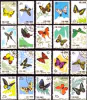 邮票虽只有方寸之大,却是民族文化、科学、技术的结晶,是国家政治和经济兴衰的反映。邮票是国家的名片,是科学的窗口。在动物世界里,人们最喜爱、发行邮票数最多的可算是蝴蝶了。寿建新和周尧(1990) 编著的《世界蝴蝶邮票》一书中收集了世界的蝴蝶邮票563枚323种, 其中我国大陆有一套20枚20种。现将我国大陆的蝴蝶邮票及其代表的蝴蝶介绍一、二。 银钩青凤蝶 Graphium eurypylus
