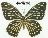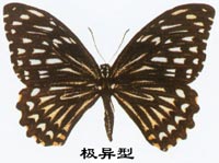 Chilasa clytia f. disimilis (Linnaeus)(翅面各翅室有黄白色条纹);斑凤蝶异型