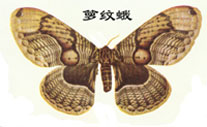 翅展154毫米。体色黄褐,与青球箩纹蛾相似,但体型特大,体色较黄。前翅中带上部外缘不是凹弧形而是齿状突出;前翅端部不是灰斑而是桔黄斑,其中三根翅脉上有许多"人"字纹。后翅中线曲度较大,翅基部微黄;后翅外缘下只三个半球形斑,其余成曲线形。胸部和腹部背面黑色,有黄褐边线,腹部背中线显著。幼虫前胸背板黄色有黑纵条纹,幼龄期第10及11节上有直立角突,胸足红褐色,有黑道发亮。