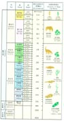 地层系统和地质年代表的建立主要依据的是古生物进化发展的阶段。古生物面貌以海洋无脊椎动物和高等藻类为主,并以低等脊椎动物无颌类和高等植物裸蕨类的出现为特征的一个时间段被称为早古生代;古生物面貌以海洋无脊椎动物为主,脊椎动物由水域向陆地侵入(从出现在早古生代的无颌类逐步进化出鱼类(如总鳍鱼)、两栖动物(如坚头类)和原始爬行动物(如兽形类)的过程),同时植物征服陆地(由裸蕨逐步进化出蕨类、种子蕨类和原始裸子植物的过程)的阶段被称为晚古生代;接下来,爬行动物中的恐龙异常繁盛,裸子植物大发展,同时哺乳动物、鸟类和被子植物出现的阶段被称为中生代;最后,恐龙大灭绝之后哺乳动物和被子植物大发展的阶段被称为新生代。
