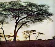 后来,地质运动使环境发生了变化。非洲大陆东部的地壳,沿着红海、埃塞俄比亚、肯尼亚、坦桑尼亚等地一线裂开,地壳深层的熔岩断断续续地涌出地面。熔岩涌出、冷却、再涌出、再冷却……,结果,埃塞俄比亚和肯尼亚的陆地慢慢地升高,形成了海拔270多米的宽阔的高地。这一宽阔高地的形成不仅改变了非洲的地貌,而且改变了非洲的气候,使得过去富含水汽的由西向东的均匀流动的气流受到了阻碍,结果,高地东部因水汽被阻隔而成为干旱少雨的地区,从而失去了热带雨林生长的条件。从此,连续覆盖的非洲热带雨林(在东部开始分裂成一片片的树林,树林之间由稀树草原和灌木丛所镶嵌。