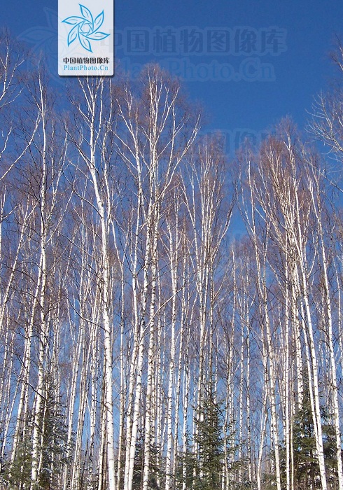 | 白桦树是木本植物,它的茎是粗大的主干 |