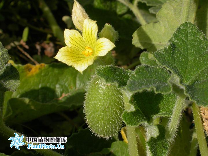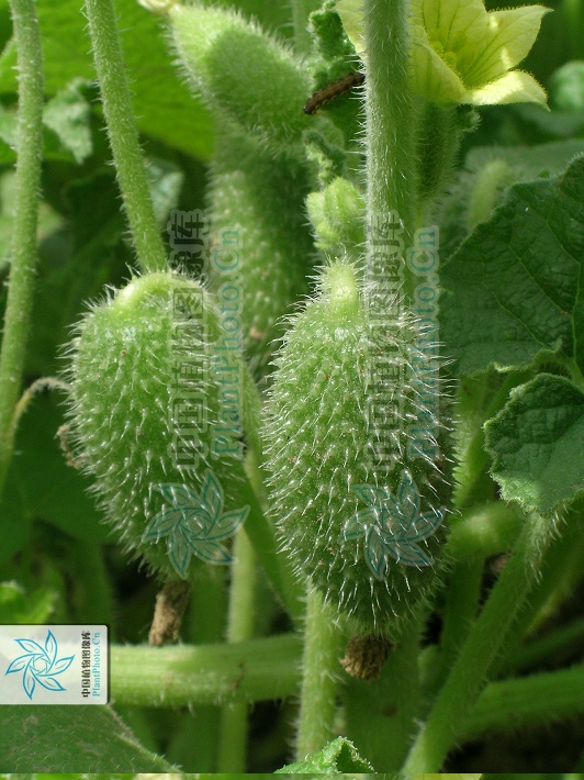 请看这一株属于葫芦科的植物,已经结了一个带毛刺的小“瓜”,你可知道此“瓜”的奥秘吗?当瓜成熟时,稍有触动此“瓜”便会脱落,并从顶端将“瓜”内的种子连同粘液一起喷射出去,射程可达5米以外,喷瓜也因此而得名。大自然中喷瓜传播种子的本领已经达到了登峰造极的水平。