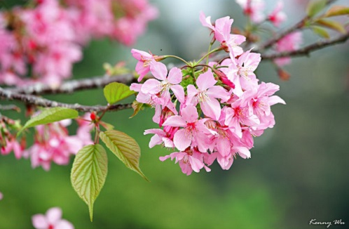 1、河津樱,因在日本河津町发现而命名,是开花最早的樱花。那些很早去日本赏樱的,樱花多半是河津樱,河津樱是早樱的代表,花瓣深粉红色,嫩芽淡黄色?;ㄒ断嗉?,美轮美奂。