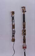 “细小工业管道机器人移动探测器集成系统”由上海大学研制,包含:20mm内径的垂直排列工业管道中的机器人机构和控制技术(包括螺旋轮移动机构、行星轮移动机构和压电片驱动移动机构等)、机器人管内位置检测技术、涡流检测和视频检测应用技术,在此基础上构成管内自动探测机器人系统。该系统可实现20mm管道内裂纹和缺陷的移动探测。