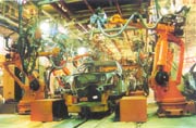 三水摩托车机器人焊装线使用了9台机器人,自1997年10月投入使用以来运行稳定,提高了产品质量,降低了人员成本,增加了产品的市场竞争力。