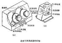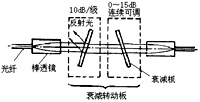 光衰减器是用于对光功率进行衰减的器件,它主要用于光纤系统的指标测量、短距离通信系统的信号衰减以及系统试验等场合。光衰减器要求重量轻、体积小、精度高、稳定性好、使用方便等。它可以分为固定式、分级可变式、连续可调式几种。下面分别是连续可调式衰减器的工作原理和结构示意图。