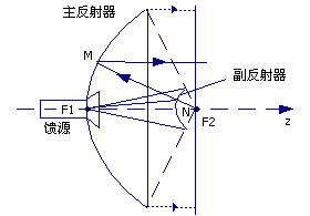 当辐射器位于旋转双曲面的实焦点F1处时,由F1发出的射线经过双曲面反射后的射线,就相当于由双曲面的虚焦点直接发射出的射线。因此只要是双曲面的虚焦点与抛物面的焦点相重合,就可使副反射面反射到主反射面上的射线被抛物面反射成平面波辐射出去。