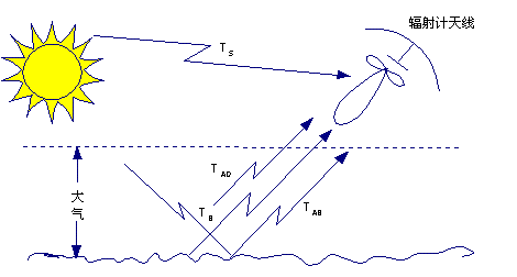 ¡¡¡¡Èçͼ£¬Ëü±íÃ÷´Ó¸÷ÖÖÔ´½ÓÊÕÔëÉù¹¦ÂʵÄÒ»¸öÎÞÏßµç·øÉ伯ÌìÏß¡£ÌìÏßÖ¸ÏòµØÇòµÄÒ»¸öÇøÓò£¬Õâ¸öÇøÓòÓеرíµÄÃ÷ÁÁζÈTB¡£´óÆø²ãÔÚËùÓз½Ïò¼¤·¢·øÉ䣬ֱ½ÓÏò×ÅÌìÏߵķøÉä·ÖÁ¿ÎªTAR¡£ÔÚÄÇÀ»¹¿ÉÄÜÓдÓÌ«Ñô»òÆäËüÔëÉùÔ´À´µÄÔëÉù¹¦ÂʽøÈëµ½ÌìÏßµÄÅÔ°ê¡£Òò´Ë£¬ÓÉ·øÉ伯Ëù²âÁ¿µÄ×ÜÃ÷ÁÁζȣ¬Êǹ۲ìÏÖ³¡£¨³¡µã£©µÄº¯Êý£¬ÒÔ¼°¹Û²ì½Ç¡¢ÆµÂÊ¡¢¼«»¯¡¢´óÆøË¥¼õºÍÌìÏß·½ÏòÐԵĺ¯Êý¡£Ó¦Ó÷øÉ伯µÄÄ¿µÄÊÇÓɲâÁ¿µÄÃ÷ÁÁζÈÍÆÂÛ³öÓйØÏÖ³¡µÄÐÅÏ¢£¬ÎÞÏßµç·øÉä»ú¹¹µÄ·ÖÎöÊÇÃ÷ÁÁζÈÓëÏÖ³¡µÄÎïÀíÌõ¼þÏàÁªÏµ¡£ÀýÈ磬ÔÚɳ×ÓÉÏÓÐÒ»²ã¾ùÔÈ·Ö²¼µÄÑ©£¬Ñ©ÉÏ·´ÉäµÄ¹¦ÂÊ¿ÉÒÔ±»¿´×÷ÊÇÆ½Ã沨´Ó¶à²ãµç½éÖʵķ´É䣬´Ó¶øÒý³öÒ»ÖÖËã·¨£¬ÕâÖÖËã·¨¿ÉÒÔÀûÓø÷ÖÖÆµÂÊϲâµÃµÄÃ÷ÁÁζȸø³öÑ©µÄºñ¶È¡£