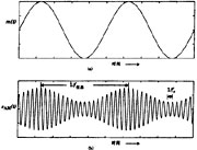 图中,m(t)是调制信号,下图是调制信号叠加在高频信号中的波形,从图中可以看出,高频信号的幅度随着调制信号作相应的变化,这就是调幅波。由于高频信号的幅度很容易被周围的环境所影响。所以调幅信号的传输并不十分可靠。在传输的过程中也很容易被窃听,不安全。所以现在这种技术已经比较少被采用。但在简单设备的通信中还有采用。比如收音机中的AM波段就是调幅波,大家可以和FM波段的调频波相比较,可以看到它的音质和FM波段的调频波相比会比较差,原因就是它更容易被干扰。
