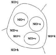图中:示出了系统i、j、k、凡系统i中包含有u、v、t三个网络。这三个网络的识别对(SID,NID)应当分别为(i,u)、(i,v)、(i,t),而(i,o)则是i系统中的另外的一个网络。相应地,在SID分别为j,k,h的区域,它们也有各自的网络,网络之间通过对(SID,NID)的识别来区分,也同时由这些信息完成漫游功能。