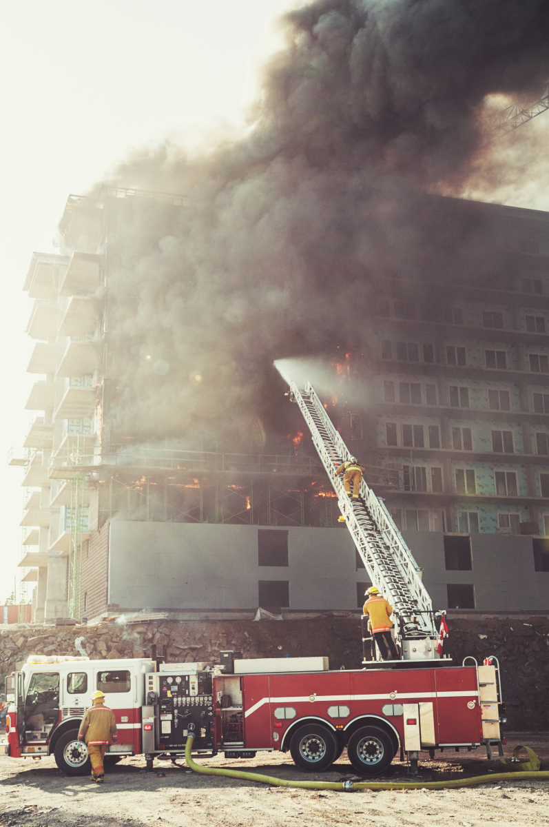 消防员借助消防梯实施灭火救援(图片来源:veer图库)